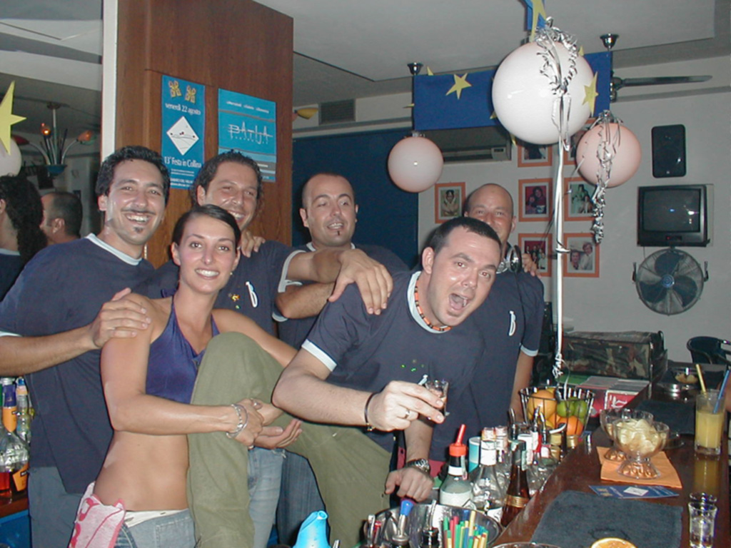 Con tre appuntamenti settimanali, mercoledì, venerdì e sabato, apriamo la prima discoteca sulla sabbia. Passare la notte in spiaggia con musica e divertimento senza spesa d’ingresso è quello che tutti sognavano. Migliaia di persone invadono il Molo di Cesenatico dalle 10 di sera fino al mattino. Una Estate indimenticabile per l’impegno fisico ma di grande soddisfazione per aver centrato ancora una volta l’obbiettivo. Nel frattempo al Tequila si festeggia il Ferragosto che ha come tema “VestagliaParty”. La partecipazione è massiccia uomini e donne in vestaglia prendono d’assalto il locale. Il “Pissialetto” è il drink inventato appositamente per la serata. Visto il successo ottenuto con il Batija decidiamo di proseguire il cammino in quel di Cesenatico con l’apertura invernale dell’ex Lanternino. Il locale, in disuso da diversi anni, lo rinnoviamo e l’apriamo come “B!TTER club”. In collaborazione con i fratelli Pagliarani, Sam e Simone che si occupano del Live, iniziamo questo nuovo percorso tutti i venerdì e sabato sera. Il locale è ad ingresso gratuito le consumazioni costano come al Bar con l’aggiunta di ottima musica, per la prima volta selezionata dalla Dj Enrica, diventiamo immediatamente il punto di riferimento per gran parte del pubblico limitrofo. Come sempre accade prima dell’inaugurazione ci ritroviamo attorno ad una tavola imbandita per affiatare e annaffiare lo Staff.