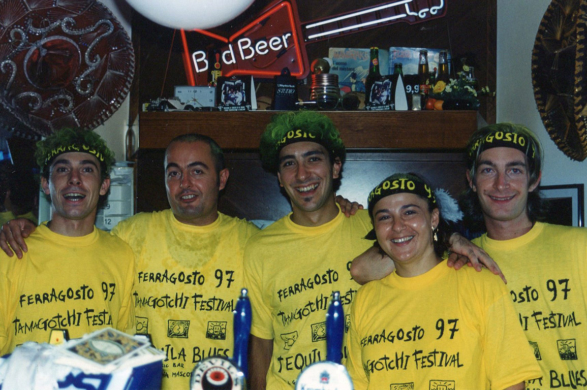 1997. Durante l’inverno il Tequila rimane aperto e come sempre festeggiamo il Carnevale che in tarda serata si trasferisce al MASKENADA” locale con cui siamo in collaborazione. Il La” all’estate viene dato con una festa organizzata ai “Due Ponti” di Sala Cesenatico “A Piedi Nudi Nel Parco”. Nel verde dell’agriturismo due piste da ballo un campo da calcetto e uno da bechvolley, musica e fiumi di birra fanno si che la serata risulti indimenticabile, tanto da riproporla nel mese successivo ma con il diniego dell’amministrazione sulle autorizzazioni siamo costretti a spostarla al Rio Grande. Festeggiamo il 5° Compleanno del Locale in collaborazione con la Villa Delle Rose dove come sempre finiamo la serata. Al Tequila continuano le collaborazioni con le ditte di liquori Grand Marnier, Elephant ed altre che ci permettono di offrire serate diverse e divertenti. Dal Giappone arriva in Italia un giochino elettronico il Tamagotchi. Lo scopo del gioco è quello di dedicarsi alle cure di un cucciolo virtuale, cercando di crescerlo e di farlo vivere il più a lungo possibile. Un successo planetario che ci da spunto per la Festa di Ferragosto “TamagotchiFestival”. Passata l’estate decidiamo di collaborare con il GALLERY di Bellaria. Dopo due mesi di ristrutturazioni alla fine di Novembre inauguriamo il nuovo “Tequila” in esterno. Grazie alla famiglia di Antolini Mariano abbiamo carta bianca sullo sviluppo delle serate. Entrano a far parte dello staff, Gullo e Samuele Dj e Vocalist, due amici di Santarcangelo che già collaboravano con noi al Maskenada. La colonna sonora live è dei SeptemberGroove con Teo e Andrea sempre presenti alle nostre “prime”.