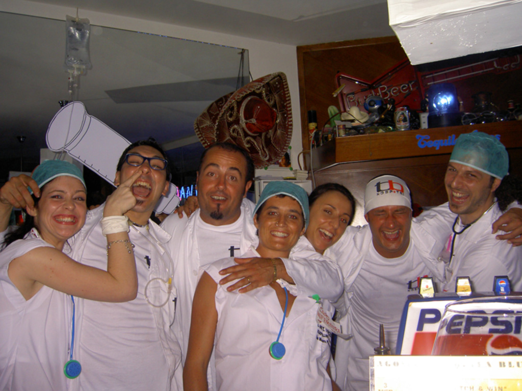 2005. Il “Km.5” continuava a funzionare di pari passo con il Tequila che come sempre organizza la Festa di Carnevale. L’Estate inizia con la collaborazione al “BekyBay” un contenitore polivalente sulla spiaggia libera di Igea Marina. I gestori delle attività più importanti del paese vengono coinvolti in questo progetto che comprende la gestione di 4 Bar, 1 Piadineria, 1 Friggitoria, 1 Palco per Concerti, 1 grande Pista da Ballo, tutto sulla Sabbia a 10 mt. dal Mare. Concerti importanti, avvenimenti Culturali, attività Sportive, Associazioni a supporto oltre che all’Amministrazione Comunale fanno si che diventi in breve tempo il punto di riferimento al fine settimana per migliaia di persone e turisti del comune di Bellaria Igea Marina. Al Tequila si continua con i Party a tema, sempre più frequenti, tra cui quello di Ferragosto dal nome TBhospital. L’allestimento, più che mai originale, trasforma il locale in un Ospedale. Le lampade del Bar sono scatole luminose che proiettano lastre di tibie e gomiti rotti, il Bar esterno un Lettino del Pronto Soccorso, Croci Rosse colorano le pareti e tutto lo Staff è vestito da Dottore con Camice bianco e Mascherina azzurra. Il colpo di scena lo provocano Gianni e Binci che a un certo punto della serata entrano dentro il locale, vestiti da Infermieri , con una barella. Sopra trasportavano un finto moribondo tutto insanguinato ( Miki) che tra la folla scivolava per terra. Tra le risate generali qualcuno che non sapeva della follia dello Staff si è anche preoccupato che si fosse fatto male. Un delirio!!! Durante l’inverno organizziamo delle “onenight” al Barrumba di Cervia “L’ultimo Sabato”. Così chiamato perché da Dicembre fino ad Aprile ogni Ultimo Sabato del mese si faceva festa.