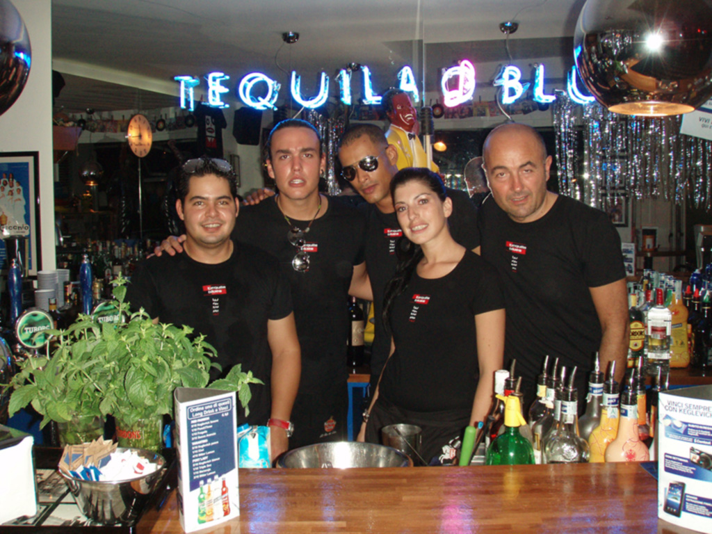 1992. Con all’aiuto di un Barman professionista come il Nik” mi sono addentrato in questa nuova avventura che consisteva nell’offrire ad un paesino piccolo come San Mauro Mare un Bar specializzato in Cocktail , in Short e Long Drink(inserire la foto della carta Cocktail) . Il locale era aperto 20 ore su 24 dalla mattina con colazioni fino alla notte come Cocktail Bar. L’esperienza avuta precedentemente con la gestione del locale “La Luna nel Pozzo” di Bellaria, mi ha permesso di avere una base di gente con cui lavorare. La fortuna ha voluto a sua volta di ottenere consenso con i ragazzi del posto che hanno permesso, non solo con la loro presenza ma anche con la loro collaborazione, di diventare luogo di incontro per tutti i giovani del Paese. Fulcro del locale il Banco Bar disegnato dall’architetto Carlo Verona , sgabelli e sedie da regista arredavano la parte interna ed esterna, tende arancioni riparavano dal sole e privo di infissi le serrande in ferro aprivano e chiudevano il locale. Il colore blu era l’elemento di raccordo tra gli arredi. Le Freccette o Dardi, inizialmente con punta in ferro, fungevano da passatempo ed elemento d’ostacolo per l’accesso al bagno. La modestia del locale era sopportata dalla professionalità e simpatia dello Staff tra cui Cristian” primo ed unico cameriere del Tequila. Un elemento promozionale che ci ha permesso di riscuotere un discreto successo è la Fidelity Card una tessera che al seguito di un tot di bevute permetteva al cliente di vincire la T-shirt del Tequila che col passare degli anni è diventata oggetto di “culto” tra i frequentatori.