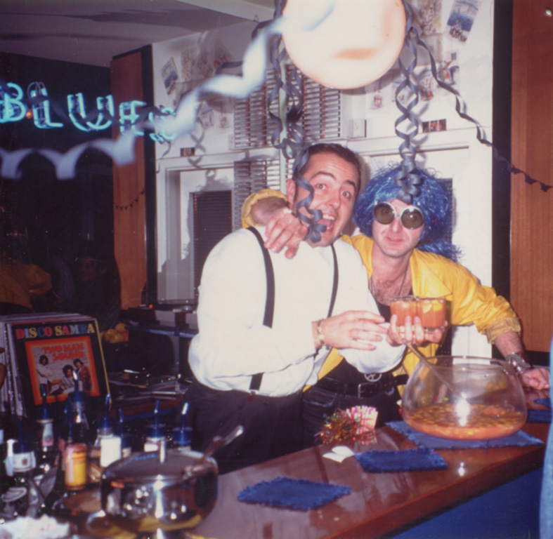 1996. Per tutto l’inverno continua la collaborazione con il Caminetto” che con il nostro inserimento è diventato ”Tequila” e come tradizione organizziamo la festa di Carnevale “nel Segno di Zorro”. Verso la fine di aprile dopo la parentesi esterna riapriamo il Tequila Blues. Checco parte per il militare quindi dobbiamo trovare un sostituto. Luca è il prescelto, amante del sud America, sorriso e spirito gioioso, entra a far parte dello Staff. Il tema del Ferragosto è “PigiamaParty” un classico intramontabile ma sempre di grande effetto. La serata calda fa si che il tasso alcolico si alzi e da li a poco la festa diventa una bolgia. La partecipazione e totale, la strada antistante diventa parte integrante del locale e tra “Pitali” riempiti con Birra, musica incalzante si arriva a mattina tra le proteste del vicinato. All’inizio dell’inverno instauriamo una collaborazione con il “MASKENADA” ex Cotton Club di Cervia dive tutti i sabati sera gestiamo il piano superiore del locale. Pre serata al Tequila per poi trasferire tutta la truppa in quel di Cervia. La selezione musicale è affidata a Teo e Derek con Micio e Max che fanno da supporto con le percussioni , il responsabile dei bar è Nik”.