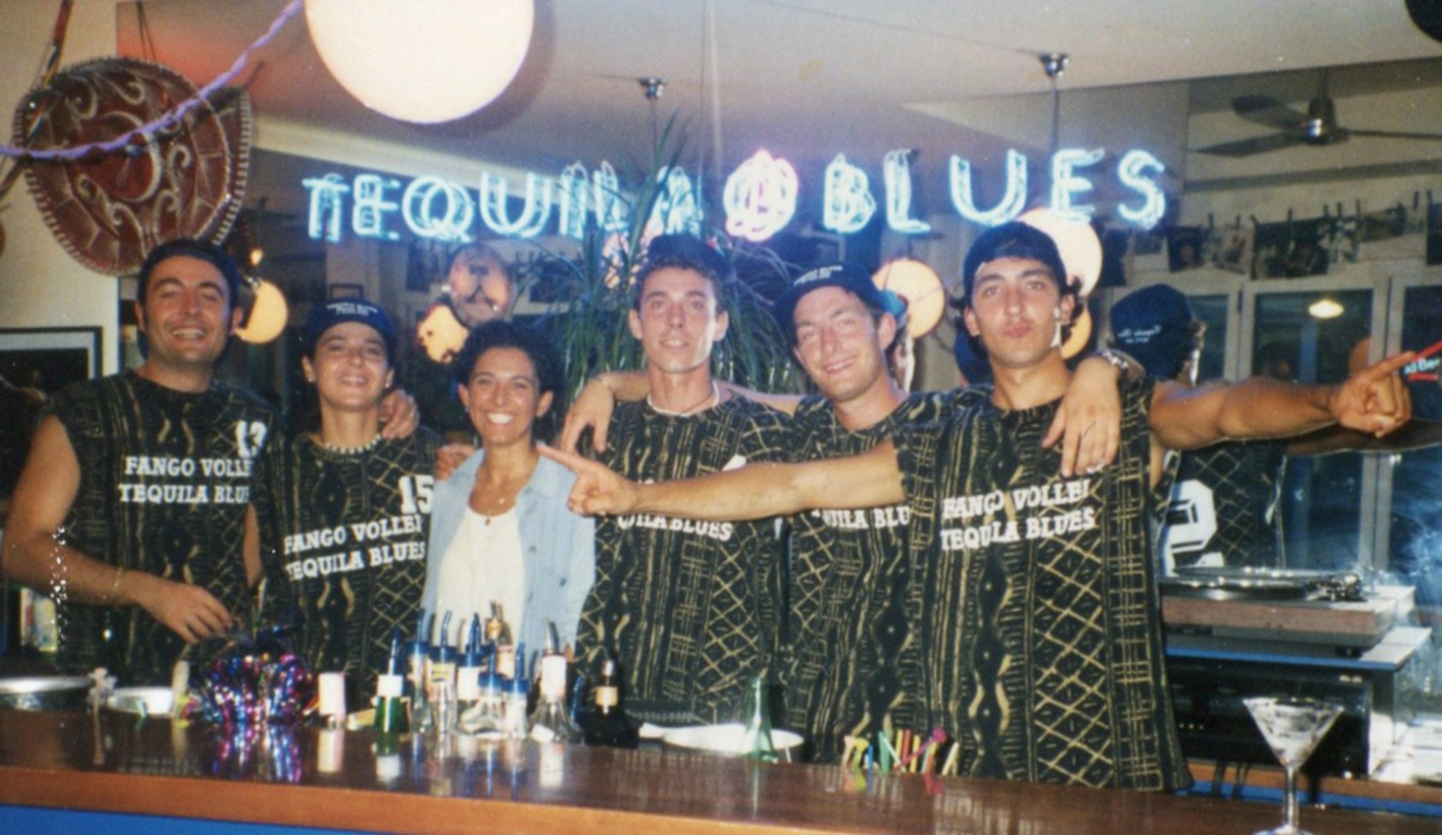 1995. Durante l’Inverno, dopo aver festeggiato il 31 Dicembre, un appuntamento classico diventa il Martedì Grasso” con la Festa di Carnevale. Un gruppo di amici di Savignano (Pollo, Zama, Riki, Ricci,Andrea, Canone) formano la prima ed ultima squadra di Pallavolo del “Tequila”. Ci iscriviamo al campionato come “FangoVollei” oltre al nome è la divisa che ci distingue, maculata nera e oro con calzoncini in tinta ma lunghi sotto le ginocchia. I risultati non sono dei migliori ma il divertimento è sempre assicurato. La novità dell’Estate è nello Staff, Checco e Binci entrano a far parte del gruppo Tequila. Checco diventa immediatamente il punto di riferimento tra i tavoli, memoria di ferro e sorriso sempre sulle labbra. Ben presto risulterà una pedina importantissima ed insostituibile per l’economia del locale. Binci si posiziona al mio fianco del Bar e velocemente impara il lavoro del Barman contribuendo a sua volta alla crescita del locale. In questa Estate prende il via la Festa di Ferragosto a Tema. Amici nostri appena rientrati dal Brasile ci fanno ascoltare una Hit brasiliana, la Macarena”, che diventerà un grande successo in Italia l’anno successivo. Le sonorità con la coreografia del ballo ci danno l’idea per il Tema del Ferragosto dedicato al Brasile e alla sua vitalità. Alla fine dell’Estate, vista la crescita del locale, decidiamo di usufruire di un contenitore più grande per ospitare i nostri clienti. Così nasce la collaborazione con un locale limitrofo il Caminetto. Il Tequila Blues rimane chiuso e spostiamo parte del nome e Staff a supporto del nuovo “Tequila”. Il successo è inaspettato, sicuri di fare bene ma non così!! Lo Staff dei collaboratori aumenta con il passare delle settimane e tra questi entra a far parte del progetto Marco Dj e Micio, precedentemente amici e clienti del Tequila. Serate indimenticabili e Feste demenziali tra cui L’AbnormalParty” e “La notte del Garbino” con il primo SchiumaParty di gran moda nelle isole spagnole.