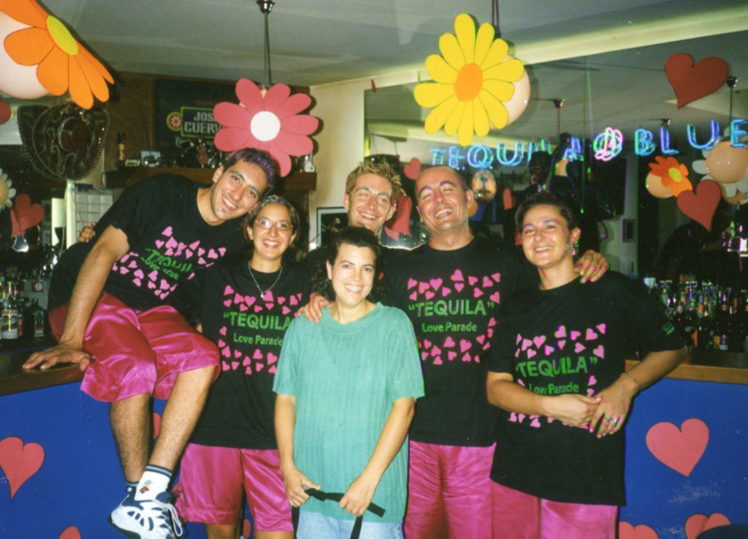 1994. Nell’estate del 1994 iniziano le prime feste a tema in collaborazione con le case distributrici di alcolici, tra queste il TequilaParty con la ditta Tequila Sauza. Hostess intrattengono i clienti con giochi e assaggi di Tequila regalando Gadget pubblicitari. La musica, cuore del locale, viene proposta anche dal vivo tra i nostri gruppi amici gli YellowCab” da Verona con Teo, Andrea e Daria che danno il via a questo percorso che si protrarrà per diversi anni nel locale. Sempre in quell’estate Tazio, uno dei fedelissimi, propone di formare la prima squadra di calcetto del Tequila. Il risultato è immediato vinciamo il torneo e festeggiamo come sempre con dosi abbondanti di alc…..! Alla fine dell’estate sostituiamo le serrande in ferro con infissi a permettendo l’apertura anche nel periodo invernale. Il 31 dicembre affittiamo una casa a Santarcangelo per festeggiare l’Ultimo dell’Anno. Un gruppo di amici cuochi ( Gianni, Sandro) preparano la cena annaffiata con Sangiovese e Veuve Clicquot.